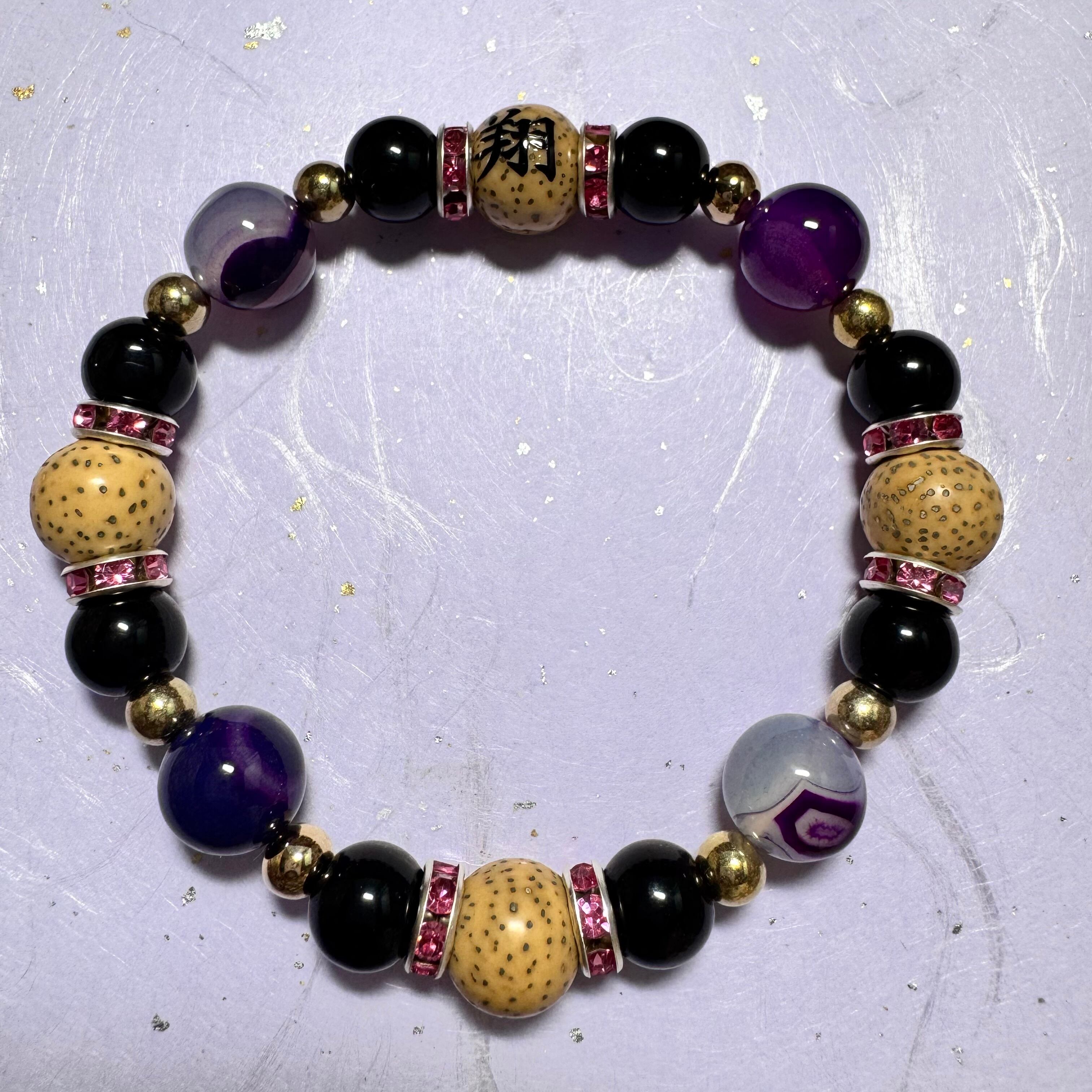 星月菩提樹・黒水晶・パープルアゲート・メタルパーツ・ロンデル